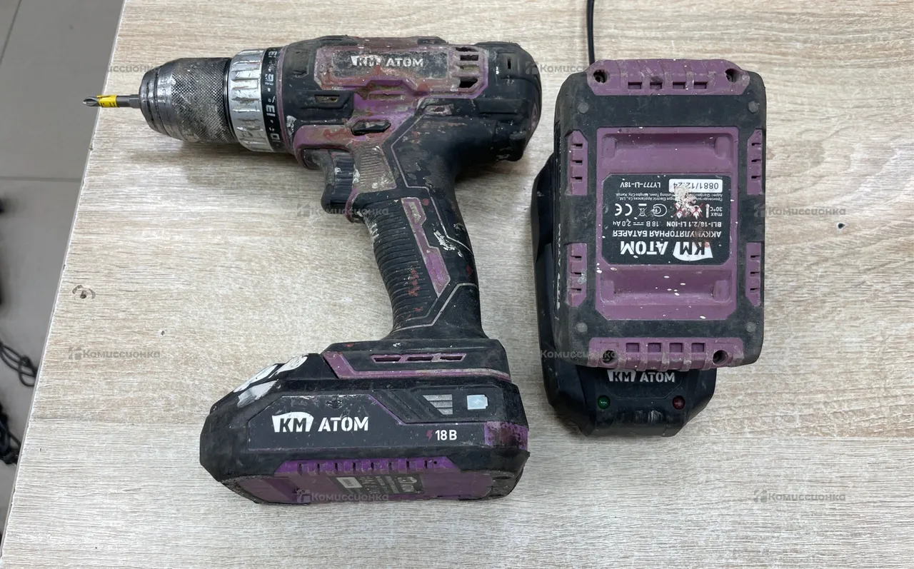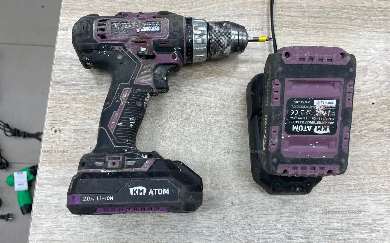 Продажа Дрель-шуруповерт аккумуляторная КМ АТОМ CD-181/2 K б/у по выгодной цене. Стоимость