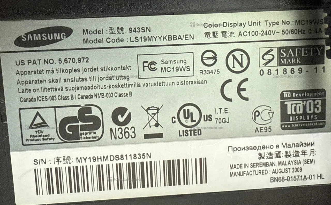 Продажа Монитор Samsung SyncMaster 943SN б/у по выгодной цене. Стоимость